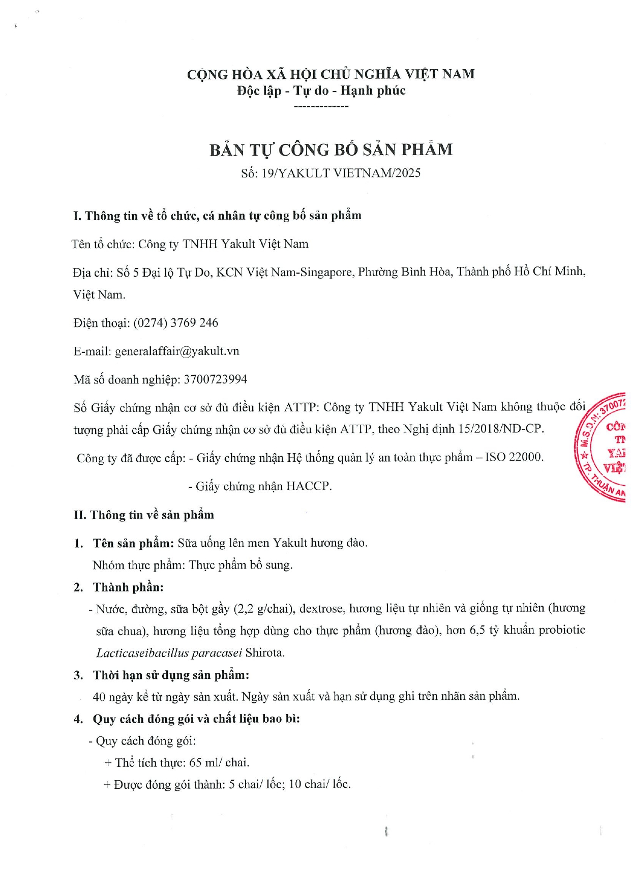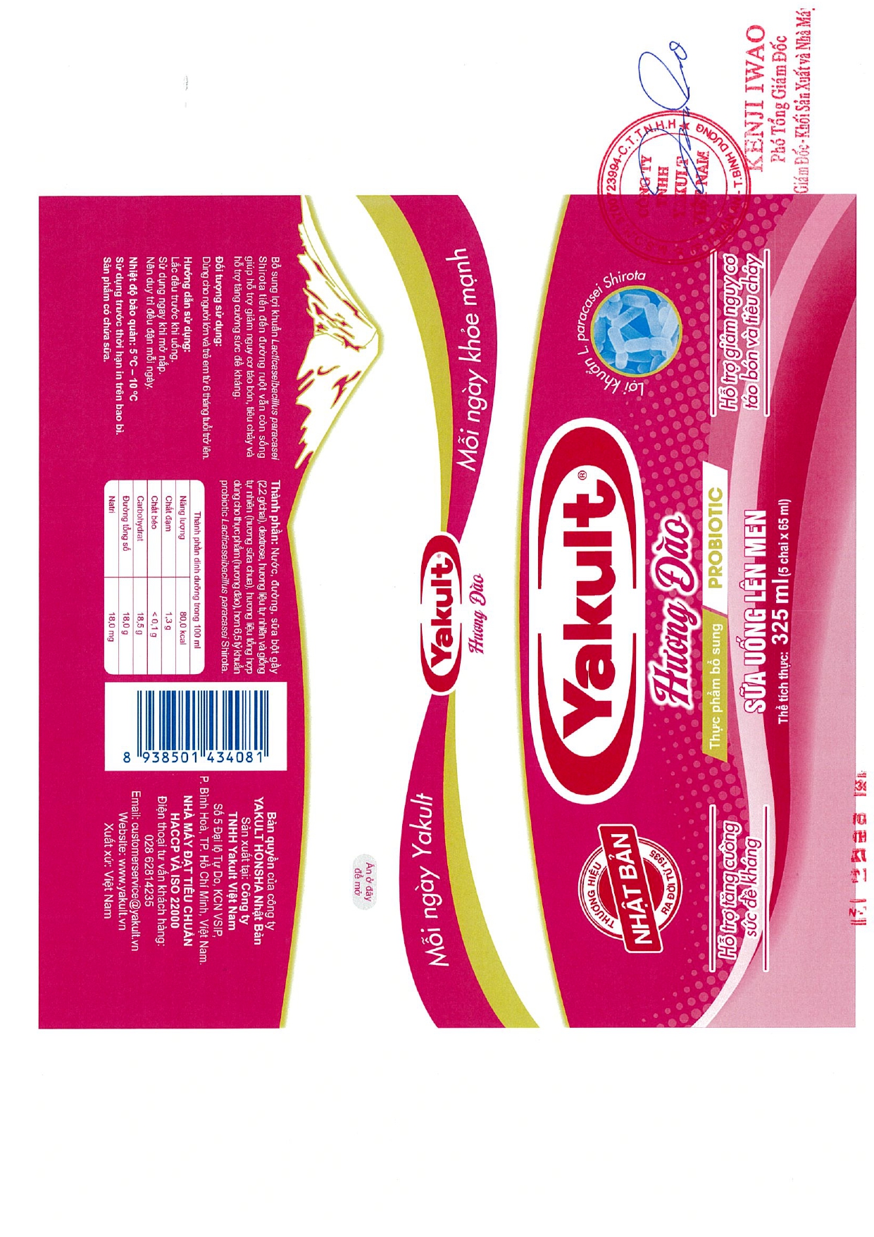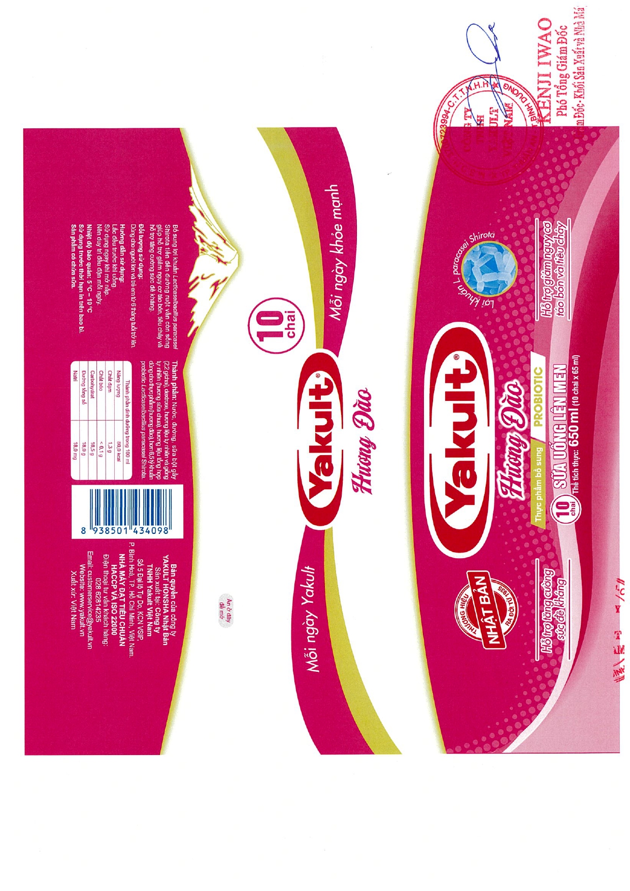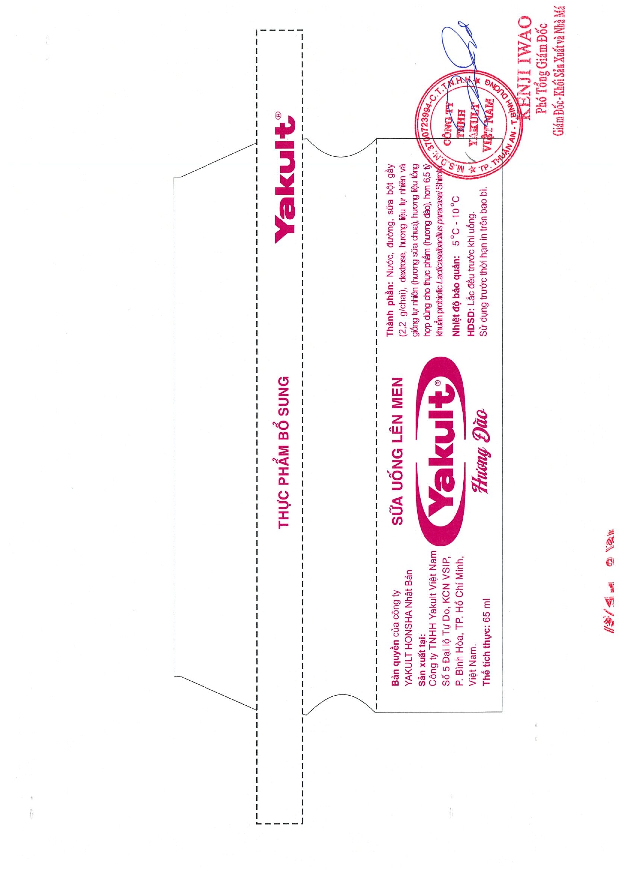 Thông báo bổ sung nhãn điều chỉnh thông tin trên nhãn bao bì của sản phẩm Sữa uống lên men Yakult, sản phẩm Sữa uống lên men Yakult ít đường và sản phẩm Sữa uống lên men Yakult hương đào