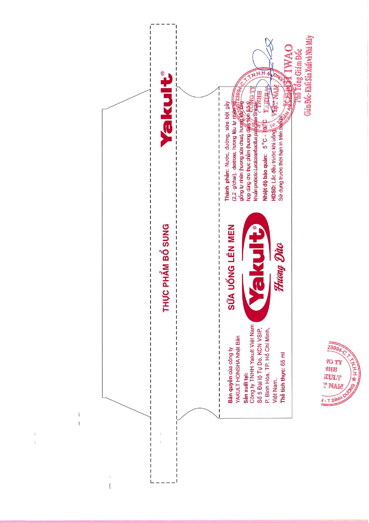 CÔNG VĂN THÔNG BÁO ĐIỀU CHỈNH MÀU MỰC IN TRÊN NHÃN CHAI CỦA SẢN PHẨM SỮA UỐNG LÊN MEN YAKULT HƯƠNG ĐÀO